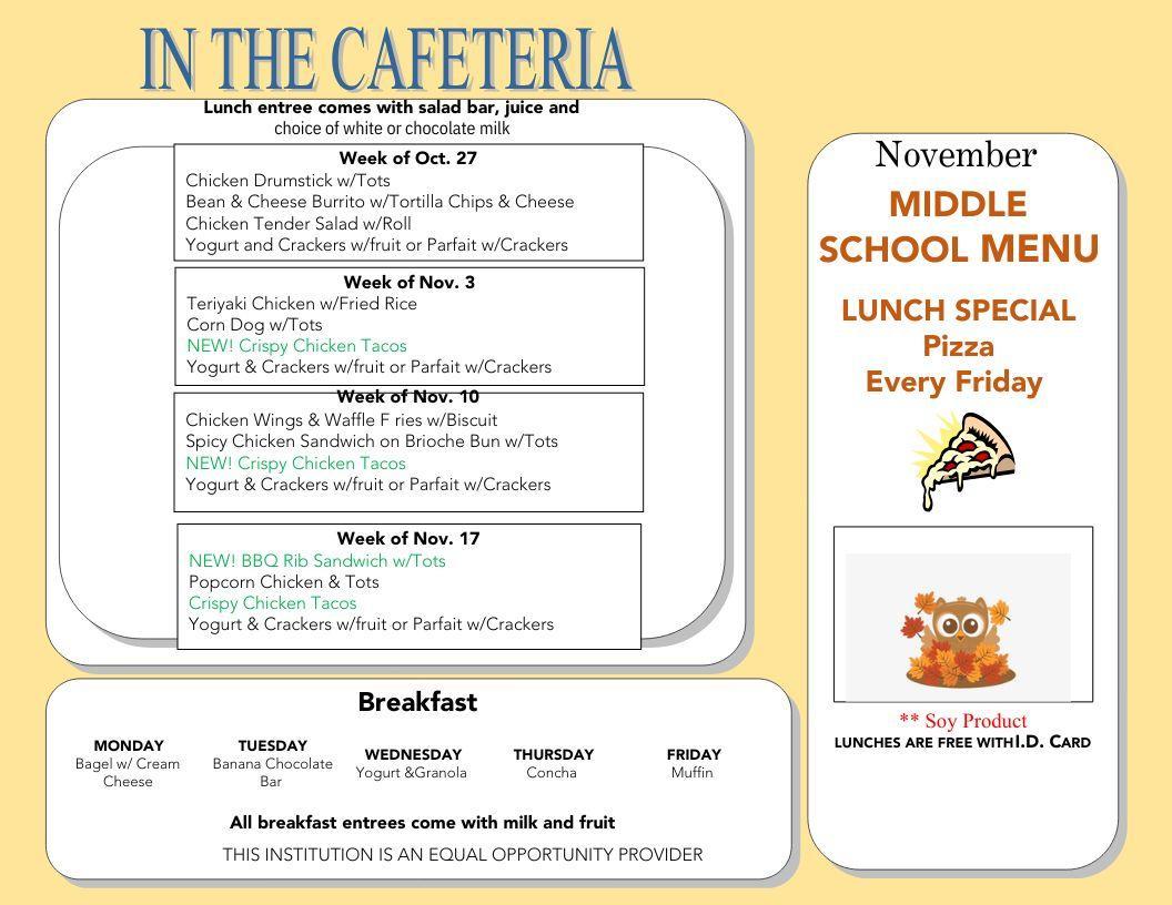 All students are eligible to receive a free breakfast and lunch each day by using their Student ID number.